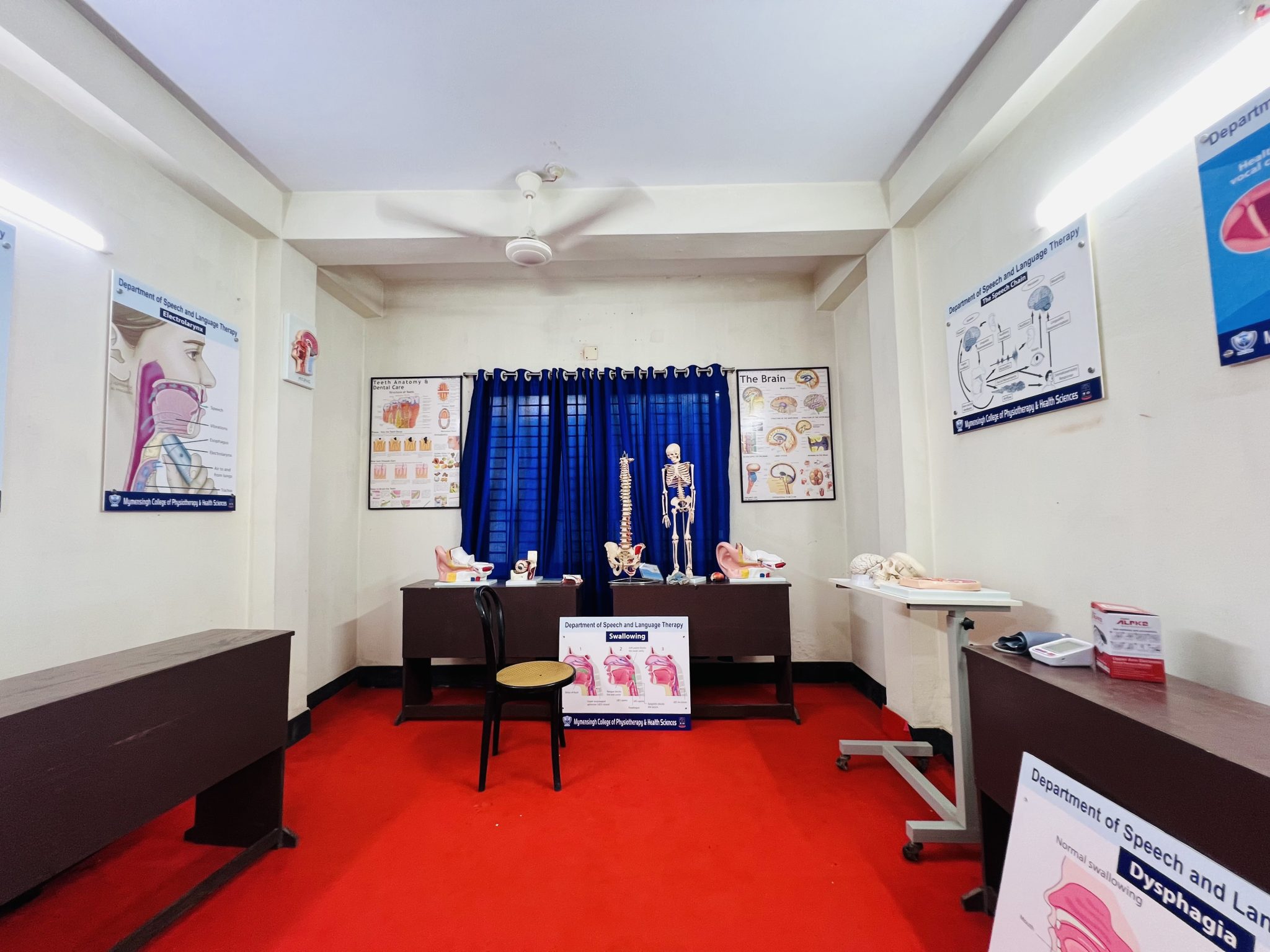 The Anatomy & Physiology Laboratory serves as a foundational learning space where students explore the structure and functions of the human body in a highly interactive environment. The lab is equipped with anatomical models, charts, skeletons, and physiological testing tools that help students visualize and understand complex bodily systems. Through guided demonstrations and practical exercises, learners gain essential insight into musculoskeletal and systemic functions, laying a strong academic base for advanced clinical courses. The laboratory environment encourages curiosity and detailed study, making it a vital component of the early stages of physiotherapy education.