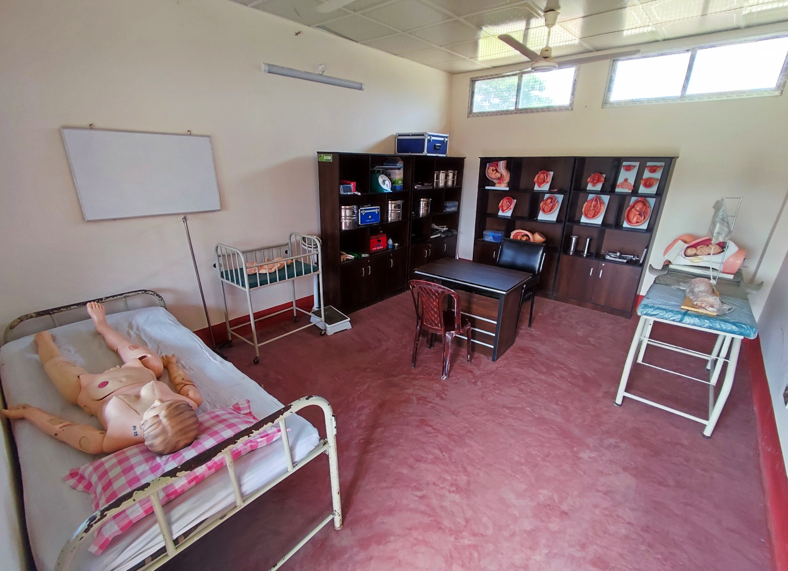 The Midwifery Lab is an essential part of our nursing education, especially in preparing us to care for mothers and newborns. It provides a safe and supervised environment where we learn and practice important procedures related to pregnancy, labor, delivery, and postnatal care. In this lab, we practice conducting normal deliveries using mannequins, monitoring fetal heart rate, providing antenatal and postnatal care, and performing newborn resuscitation. These practical sessions help us gain confidence, improve our skills, and understand the responsibilities involved in maternal and child healthcare. The Midwifery Lab not only enhances our clinical competence but also teaches us compassion, patience, and sensitivity while caring for mothers and infants. In conclusion, the Midwifery Lab plays a vital role in shaping us into skilled and responsible nurses in maternal and child health.